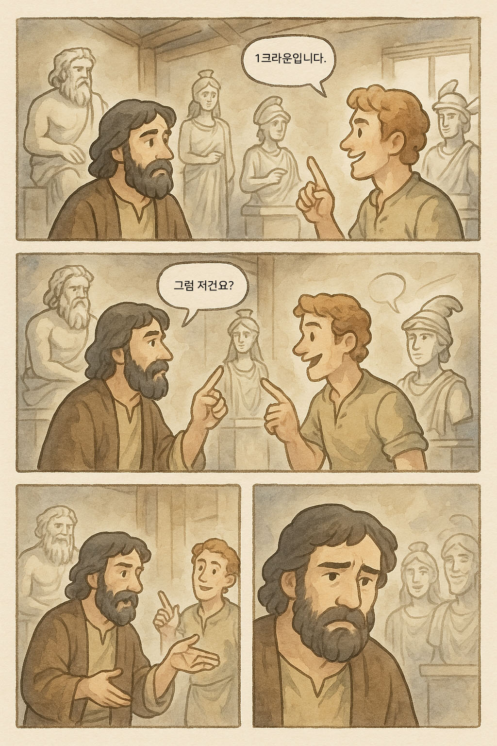 머큐리는 제우스의 조각상을 가리키며 가격을 물었다.