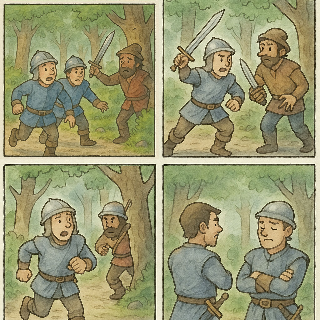 두 명의 병사가 함께 길을 가다가 강도를 만났다.
