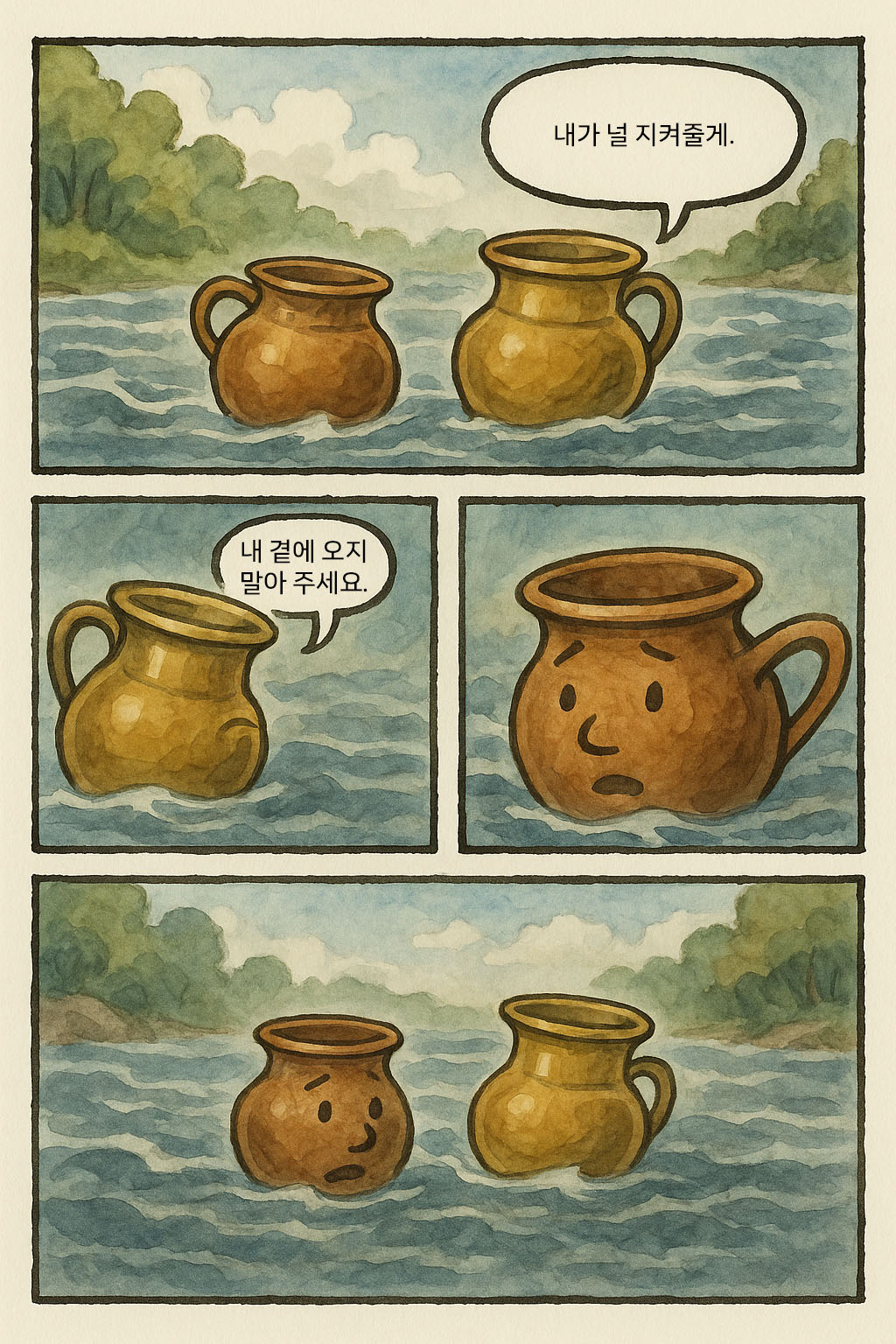 놋쇠 항아리가 질그릇 항아리에게 말했다.