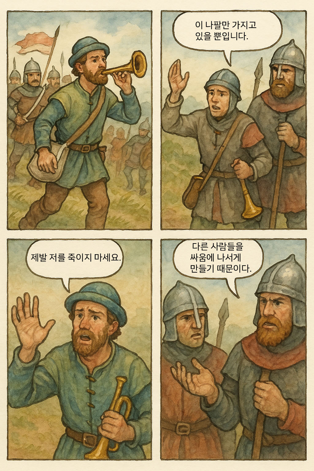 무기도 없고, 이 나팔만 가지고 있을 뿐입니다.”