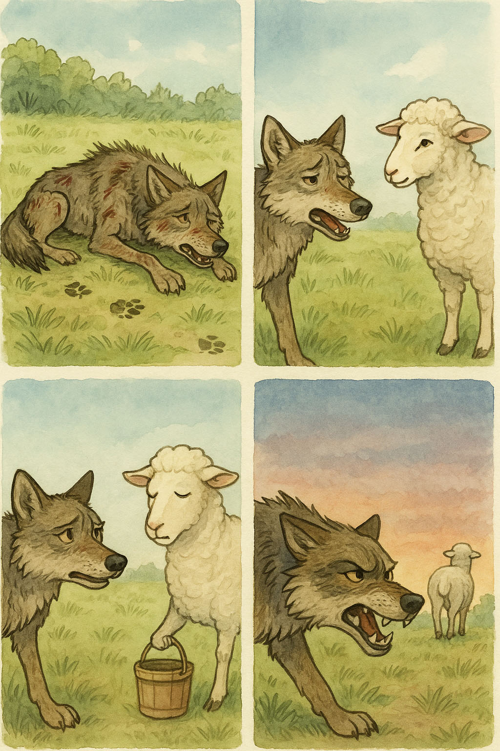 얼마 후 조금 기운을 차린 늑대는 배가 고파졌다.