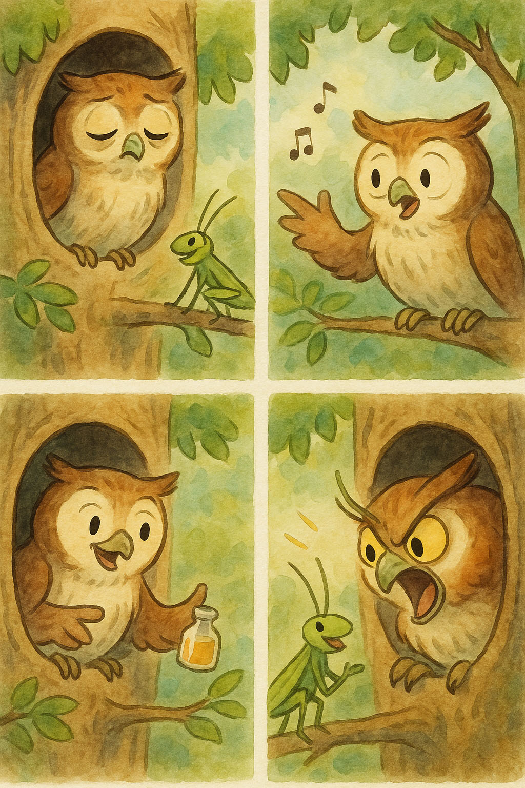 결국 올빼미는 더 이상 참지 못하고 꾀를 부려 메뚜기를 없애기로 했다.