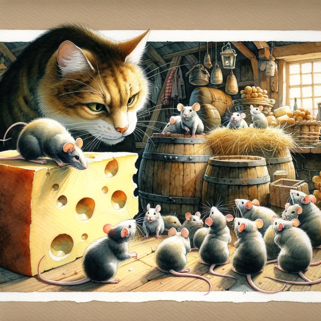 결국 생쥐들은 더 이상 견딜 수 없다고 판단하고 자기들의 구멍으로 숨어버리기로 결심했습니다.
