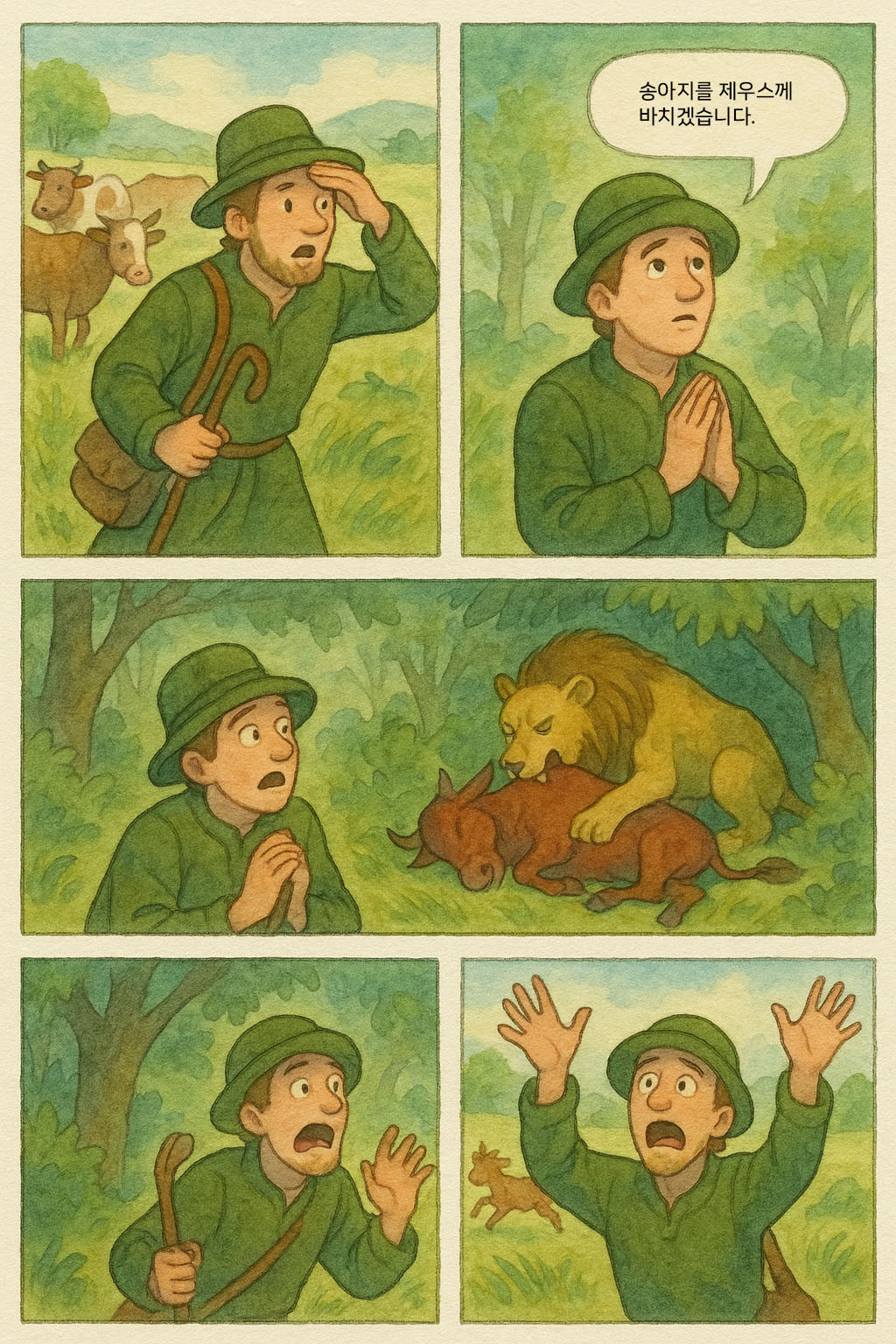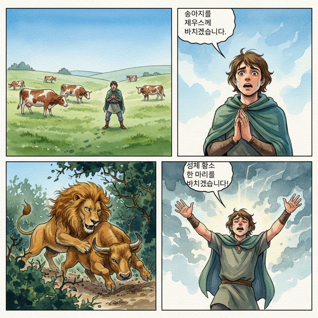 “만약 도둑을 잡게 된다면, 송아지를 제우스께 바치겠습니다.”