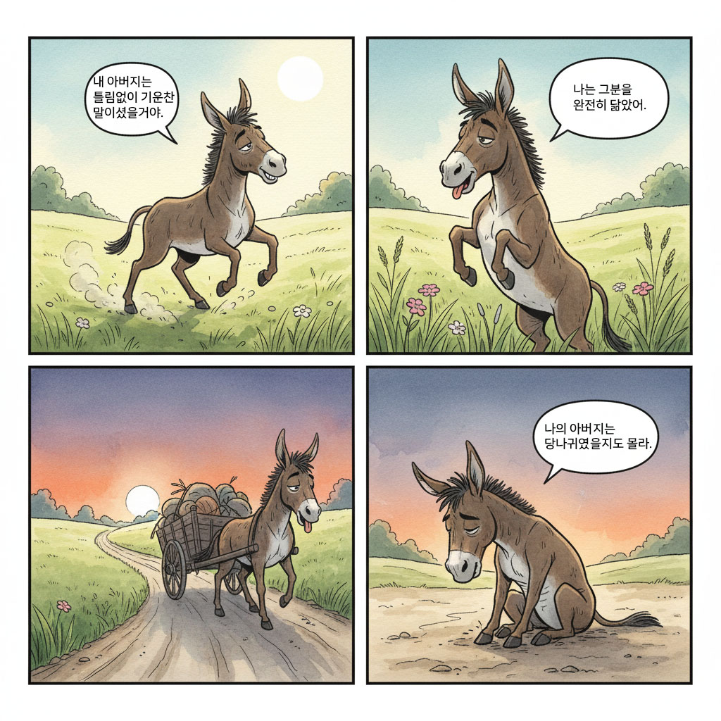 “아버지에 대해 내가 착각했구나. 결국 나의 아버지는 당나귀였을지도 몰라.”