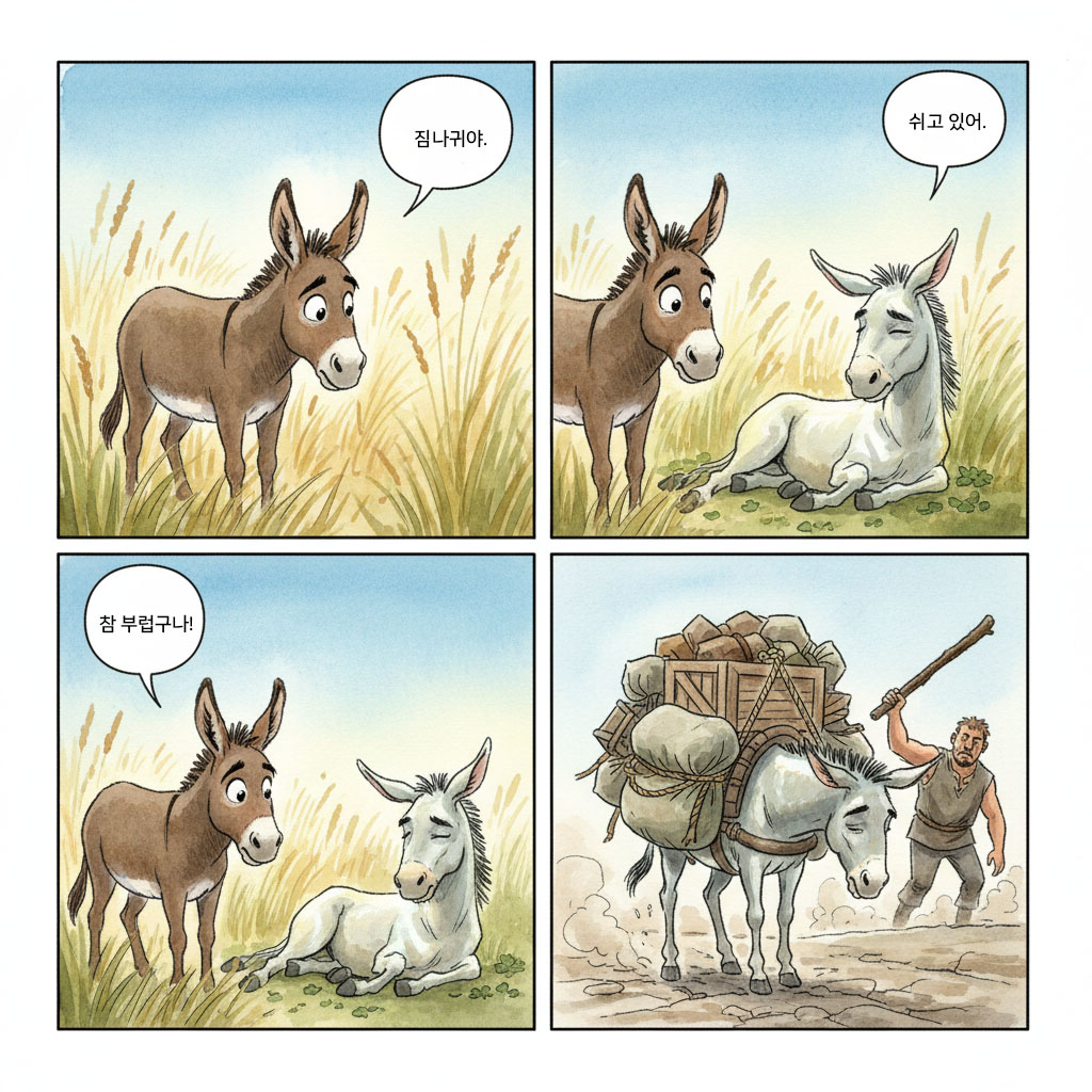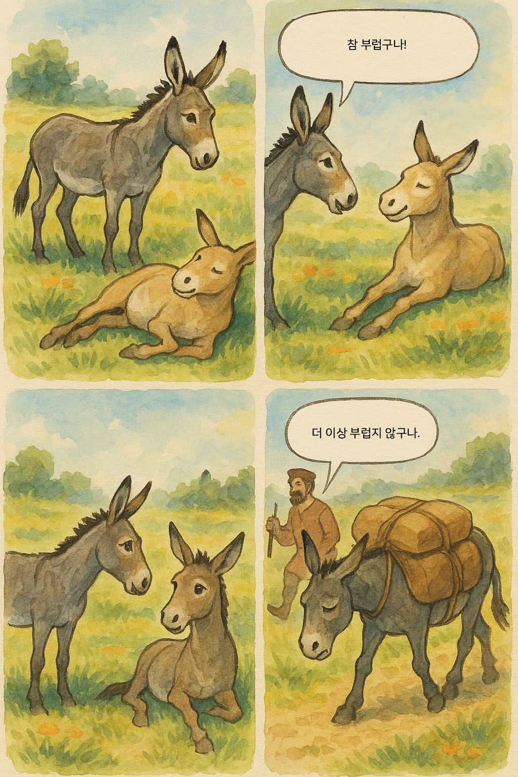 | [이솝우화] 짐나귀, 들나귀, 그리고 사자 🫏 THE PACK-ASS, THE WILD ASS, AND THE LION 🫏 荷馬のロバ、野生のロバ、そしてライオン (0) | 2025.09.22 |