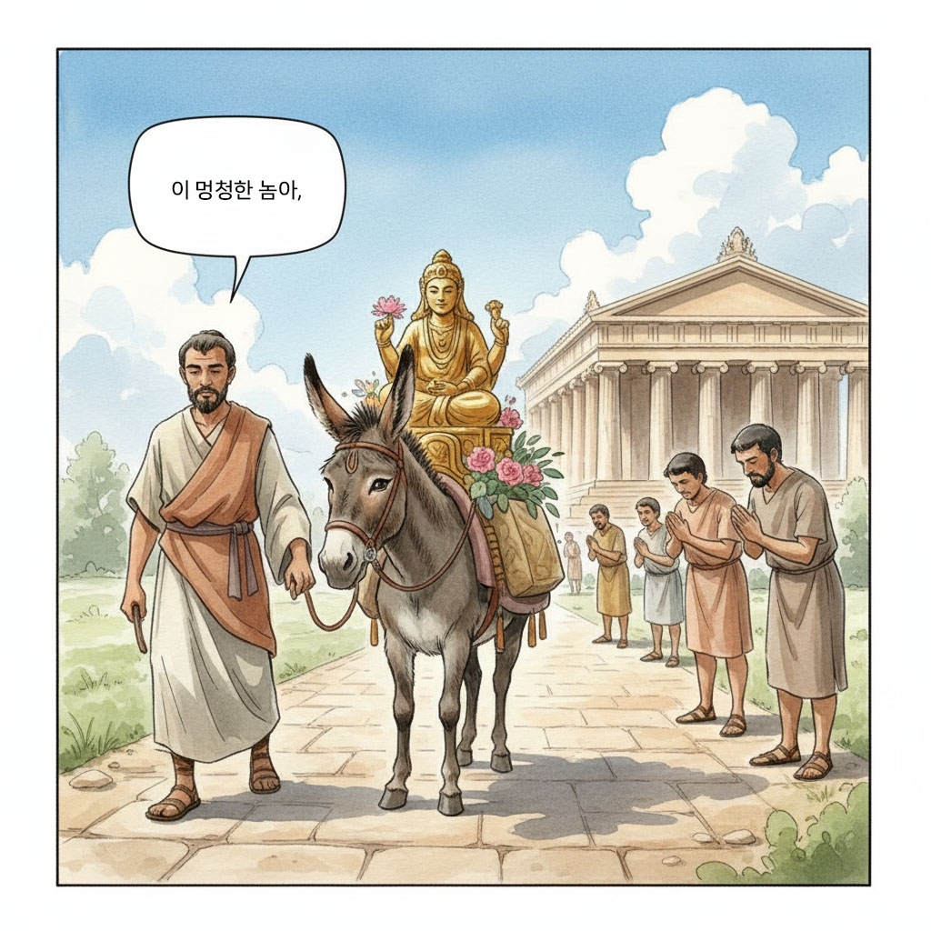 “이 멍청한 놈아, 사람들이 너 같은 당나귀에게 절한다고 생각하느냐?”