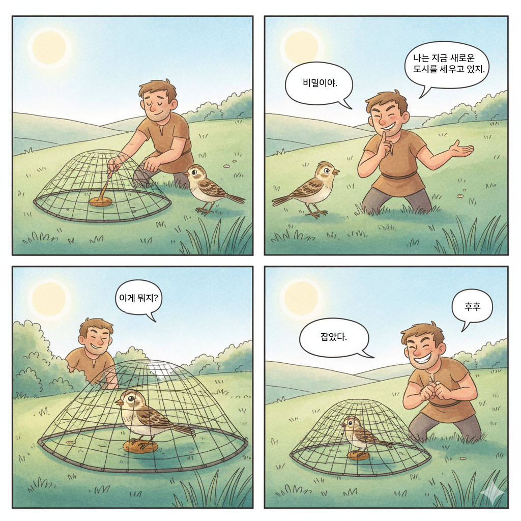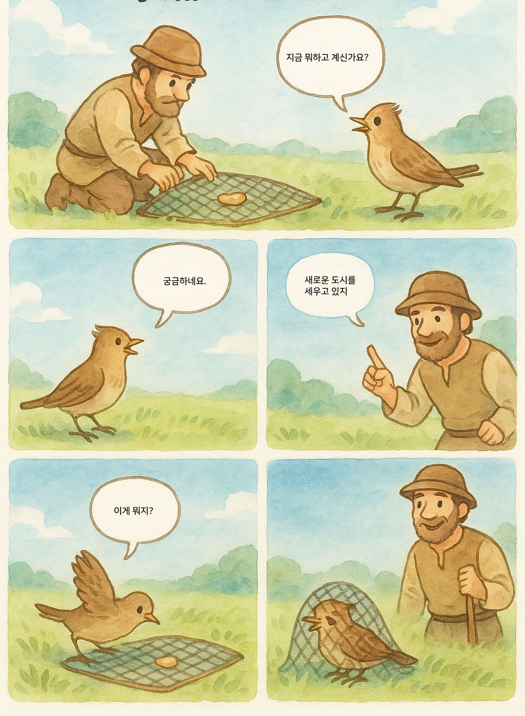 종달새는 호기심이 생겨 덫을 자세히 살펴보다가