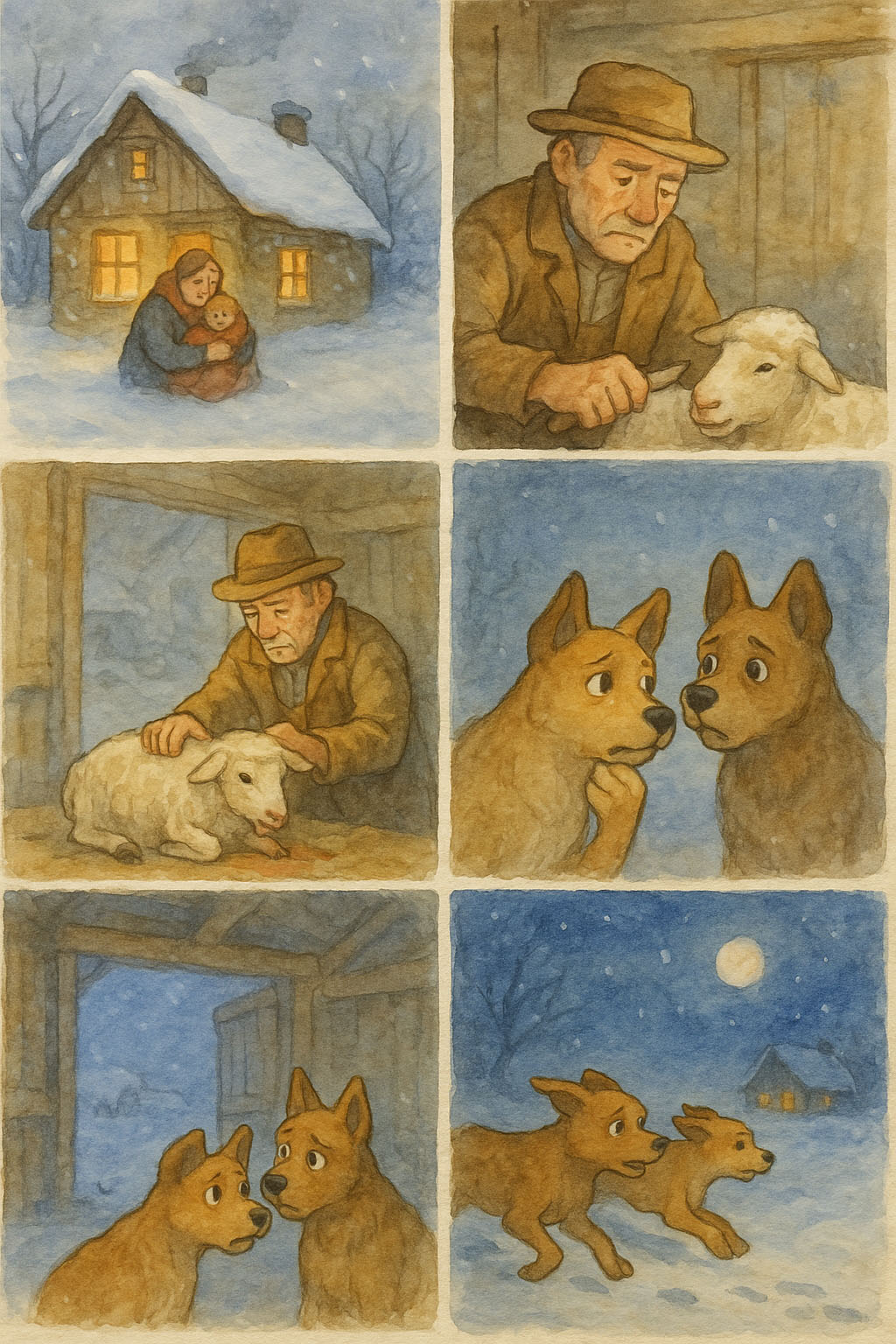 한 농부가 눈보라에 갇혀 밖으로 나가 식량을 구할 수 없게 되었다.
