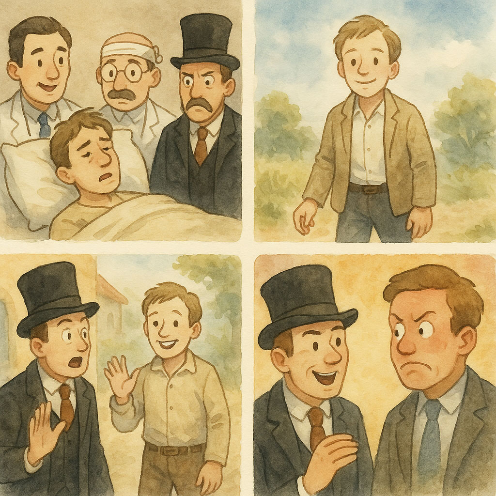 산책 도중, 그는 자신이 곧 죽을 거라고 예언했던 의사를 마주쳤다.