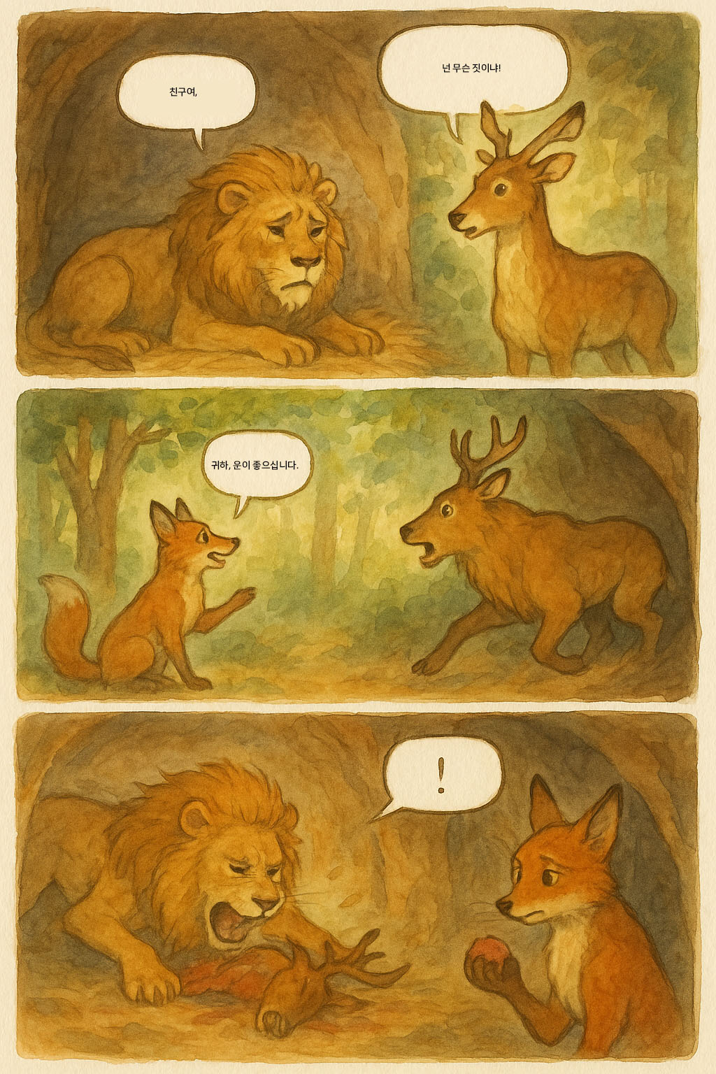 | [이솝우화] 여우와 가시덤불 🦊 THE FOX AND THE BRAMBLE 🦊 キツネとイバラ (0) | 2025.11.01 |