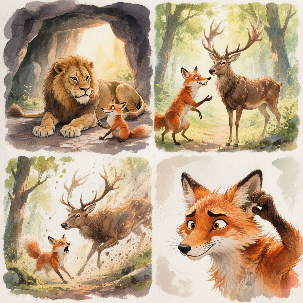 So he begged the Fox to have another try at coaxing the Stag to his den.