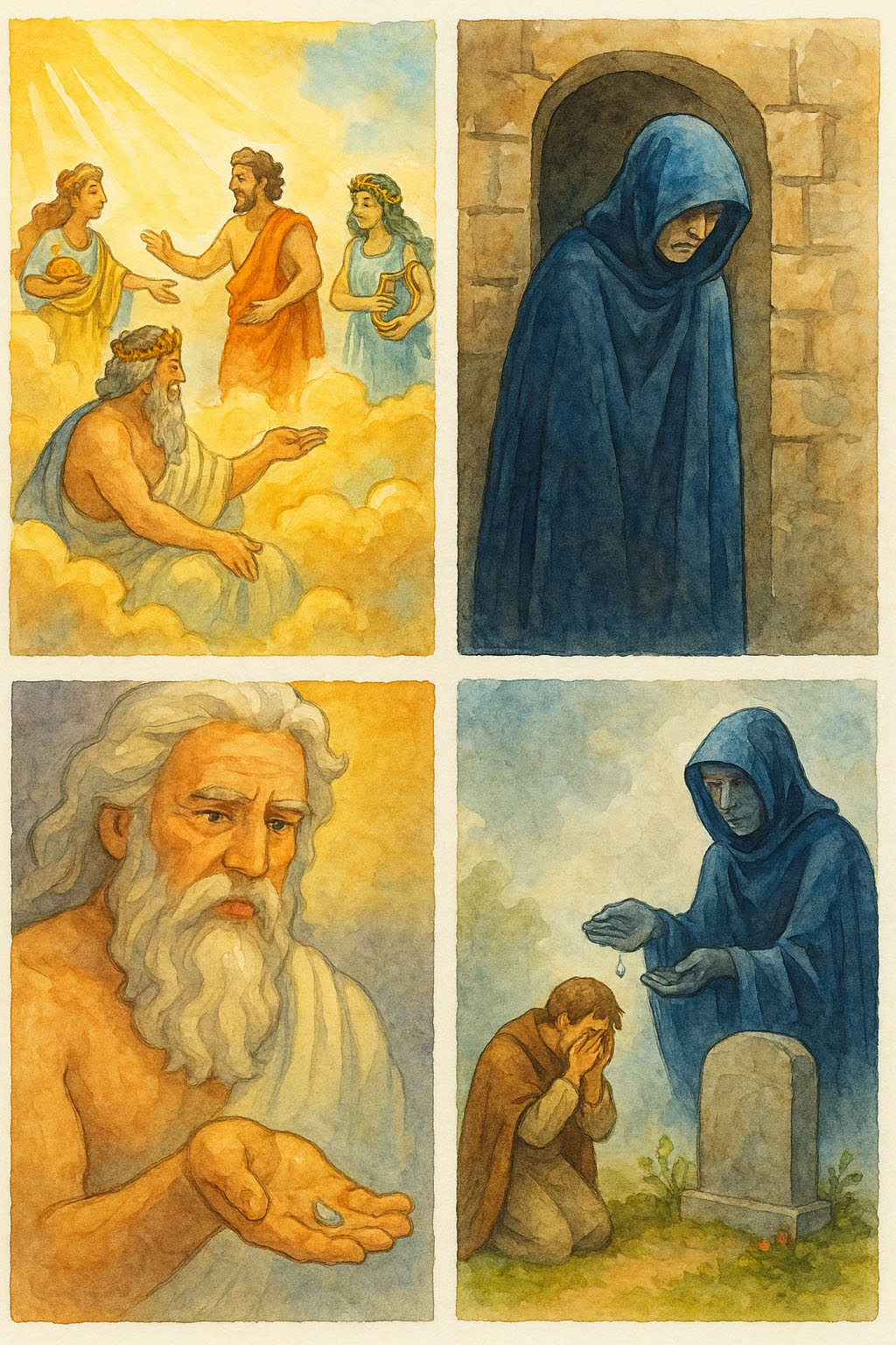 すべての神々が分け前を受け取ったあと、悲しみがやってきて言った。