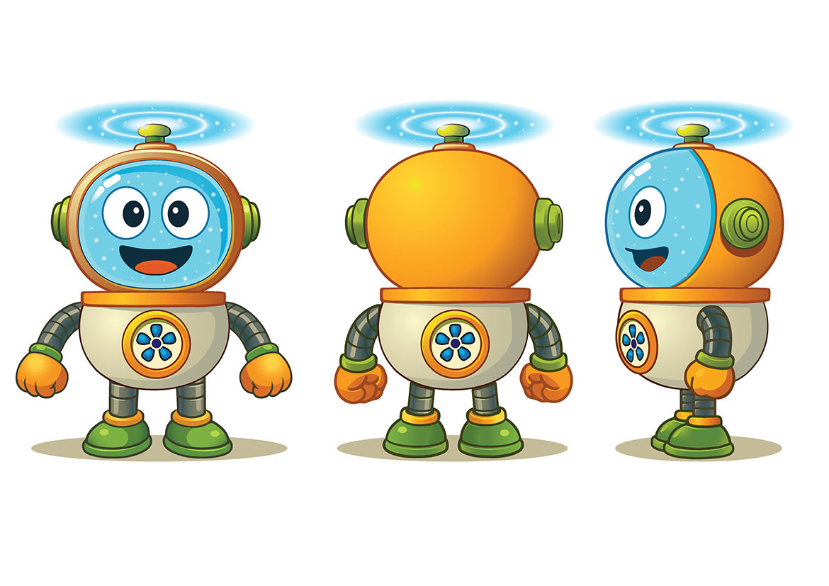 맑은 물로 채워진 머리와 반짝이는 후광은 자연과 기술의 조화를 뜻하고, 깨끗한 전기를 상징하는 에너지 로봇입니다.