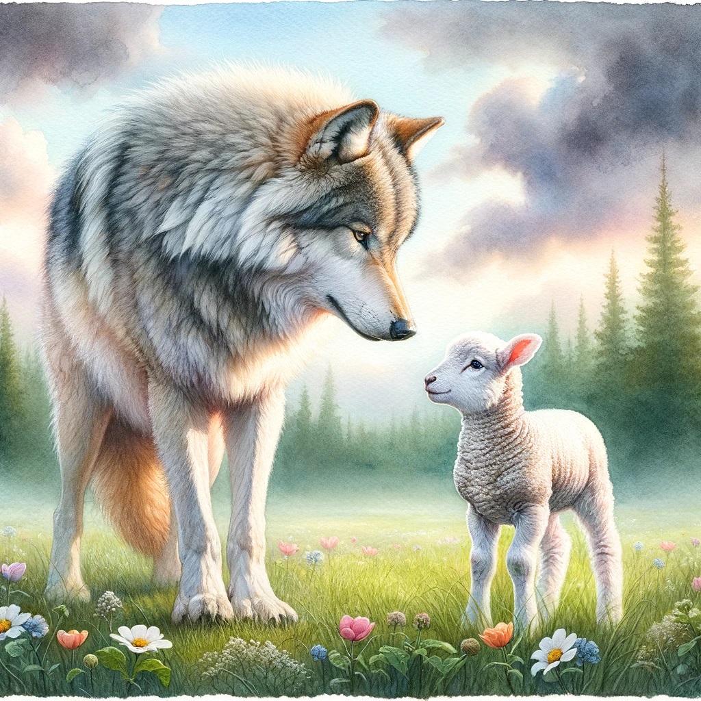 우리에서 길을 잃은 양을 만난 늑대는 그에게 폭력적인 않게 늑대가 그를 먹을 권리를 정당화할 변명을 찾기로 결심했습니다.