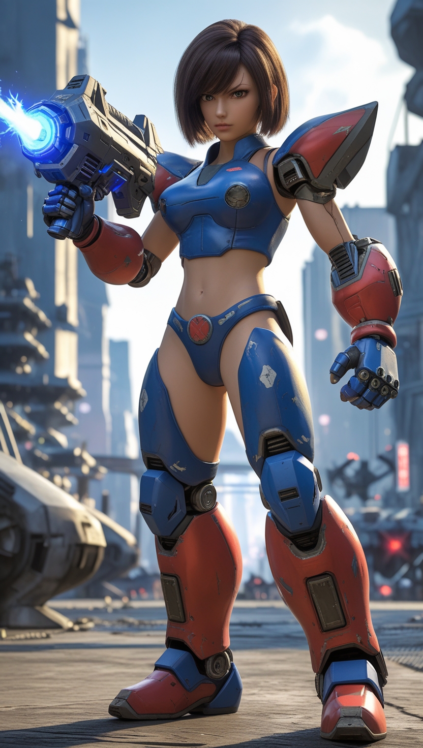 The pose is like transforming her left hand into a Rockbuster and charging the gun facing forward.