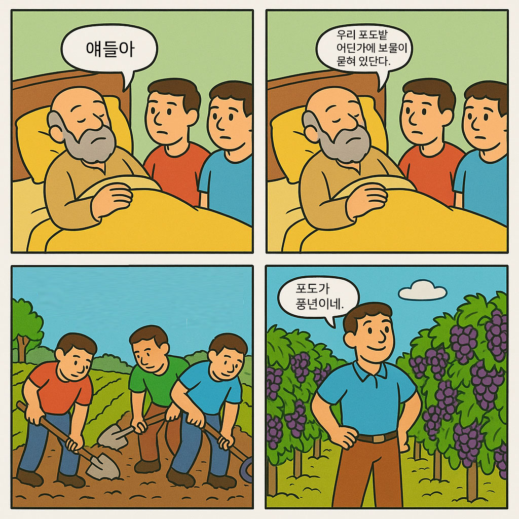 우리 포도밭 어딘가에 보물이 묻혀 있단다.