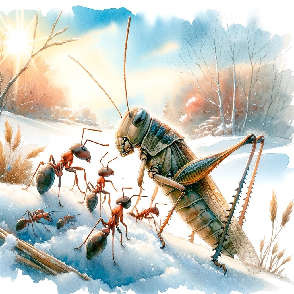 The Ants inquired of him, “Why did you not treasure up food during the summer?”